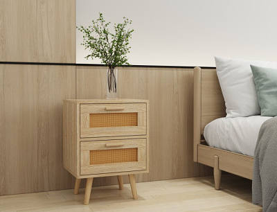 Mesita de noche moderna de ratán de melamina con panel de muebles de dormitorio de estilo nórdico 1